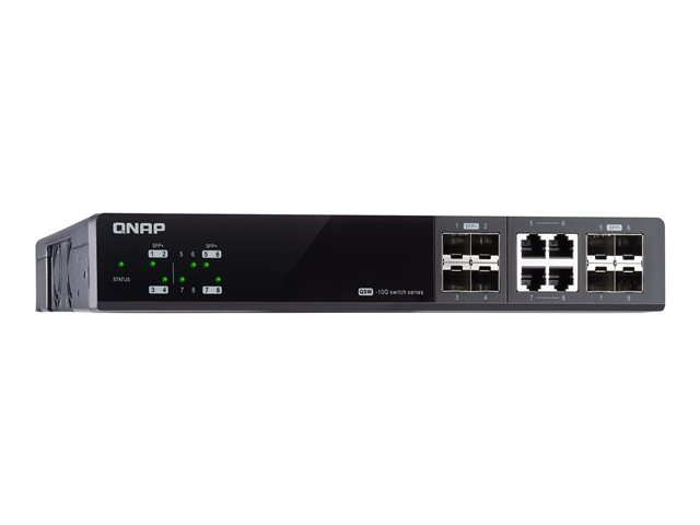 The QSW-M804-4C is a Layer 2 web-managed switch with four 10GbE SFP+ ports and four 10GbE SFP+/RJ45 combo ports that enable blazing-fast transfer speeds, simultaneous multi-workstation access to large files (ideal for video editing and multimedia) and empowers bandwidth-demanding tasks like virtualization. Supporting Layer 2 switching and providing a user-friendly entry-level network management solution, the QSW-M804-4C is an affordable way for businesses and organizations to fully embrace 10GbE connectivity.