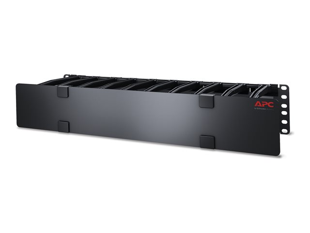 High density 2U, 6-in (150-mm) deep, horizontal cable manager with cover. Features cable access slots with pre-installed brush strips in the backplate for front to back cable pass-through and a bottom plate with features for additional cable tie-off and routing.