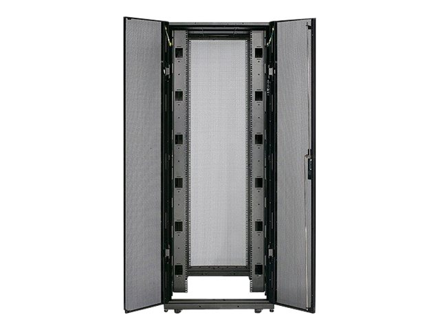 NetShelter SX-kabinetter med mange funktioner er optimeret til nem installation, håndtering af kabler, integrering af strømfordeling og maksimering af luftstrømmen. Leverandøruafhængig montering for garanteret kompatibilitet med alt EIA-310-kompatibelt 19"-udstyr. APC's "Fits Like a Glove"-pengene-tilbage-garanti giver ro i sindet om, at alt dit EIA-310-E-kompatible rackmonterede udstyr fysisk vil passe i et NetShelter-skab. Store kabelåbninger i taget giver adgang til kabelgennemføring over hovedhøjde. Det nederste design giver uhindret kabeladgang gennem et hævet gulv.