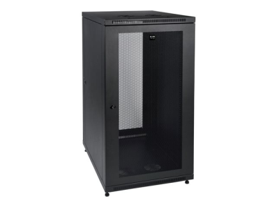 Eaton Tripp Lite Series 24U Rack Enclosure Server Cabinet tilbyder en løsning til serveradministration med sit holdbare design og overholdte standarder. Med en dybde på 33 tommer kan dette skab rumme forskellige konfigurationer til effektiv organisering og pladsbesparende opsætninger. Det understøtter en vægtgrænse på 453,6 kg, hvilket sikrer pålidelig ydeevne for tungere udstyr. Derudover forenkler det medfølgende monteringssæt installationen, samtidig med at det overholder standarder som EIA-310-E og UL 60950 for sikkerhed og pålidelighed.