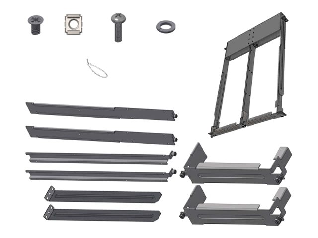 | Pakke Indhold | 2 system-monteringsklinger med 8 skruehuller, 2 systemmonteringsbklinger med 7 skruehuller, 2 blanke dækker, 30 fladhovede skruer (4-40), 2 rammeskinneskydere, 12 M6 pandehovedskruer, 12 M6 fjederspændeskiver, 12 M6 fjeder stålbursmøtrikker, 8 kabelbindere |