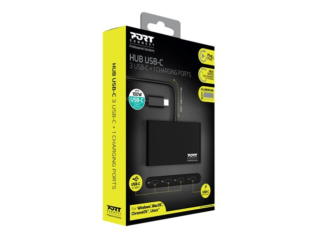 PORT Connect USB-C Hub tilbyder en problemfri og effektiv måde at tilslutte flere enheder med sit kompakte design. Denne desktop-hub har fire USB-porte, så brugerne nemt kan udvide deres tilslutningsmuligheder. Hubben overholder USB 3.1 Gen 1-standarderne og understøtter en dataoverførselshastighed på 5 Gbps, hvilket muliggør hurtig og pålidelig datadeling. Hubben strømforsynes via USB og har også USB Power Delivery-funktion, så enheder kan oplades med hastigheder på op til 100 W. Aluminiumshuset bidrager til holdbarheden og giver samtidig et elegant udseende, hvilket gør den til en værdifuld tilføjelse til ethvert arbejdsområde.