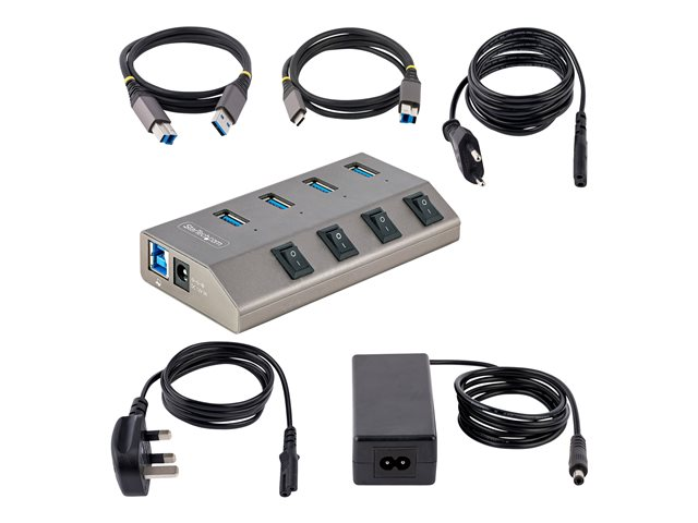 StarTech.com 4-Port Self-Powered USB-C Hub with Individual On/Off Switches, USB 3.0 5Gbps Expansion Hub w/Power Supply, Desktop/Laptop USB-C to USB-A Hub, 4x BC 1.2 (1.5A), USB Type C Hub - USB-C/A Host Cables (5G4AIBS-USB-HUB-EU) - Hub - 4 x USB 3.2 Gen 1 - desktop