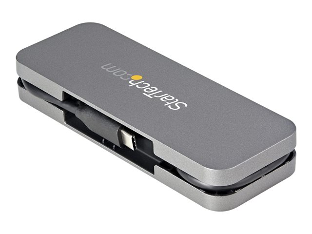 - Compact USB-C hub with hideaway cable management to prevent tangles in laptop bags or pockets
