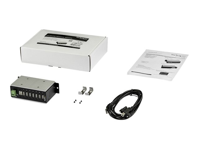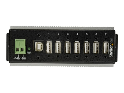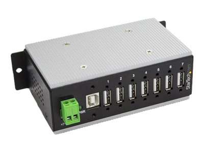 StarTech.com 7 Port USB 2.0 Hub, Metal Industrial USB-A Hub (7x USB-A) with ESD & Surge Protection, Extended Operating Temp -40 to 185°F, Din Rail/Wall/Desk Mountable, USB Expander, Rugged - Windows/macOS/Linux (HB20A7AME) - Hub - 7 x USB 2.0 - DIN monterbar på skinne - DC strøm - TAA-kompatibel - for P/N: ITB20D3250