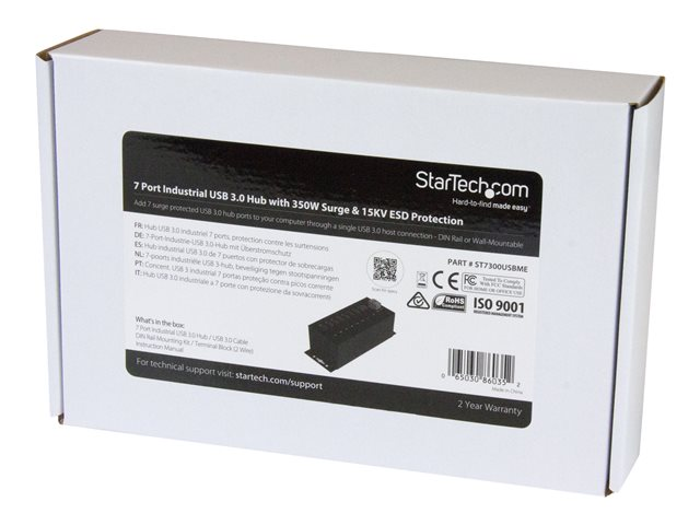 StarTech.com 7-Port USB 3.0 Hub - Metal Industrial USB-A Hub with ESD Protection & 350W Surge Protection - Din Rail, Wall or Desk Mountable - TAA Compliant USB Expander Hub (ST7300USBME) - Hub - 7 x SuperSpeed USB 3.0 - DIN monterbar på skinne, væg-monterbar - DC strøm - for P/N: ITB20D3250, USB312SAT3CB, USB315CB2M, USBLT1MWS, USBLT2MBR, USBLTM1MBK, USBLTM1MWH