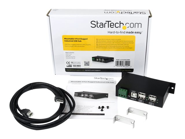 StarTech.com Rackmount USB 2.0 Hub - 4 Port Rugged Industrial USB 2.0 Hub - Hub - 4 x USB 2.0 - DIN monterbar på skinne - DC strøm - for P/N: ITB20D3250, MSDREADU2OTG, USB2HAB15, USB2HAB30AC, USB2HAB50AC, USB2HABM1, USB2HABM6RA ST4200USBM