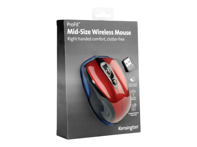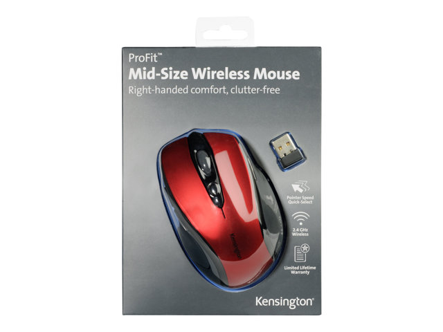 Kensington Pro Fit Mid-Size - Mus - højrehåndet - optisk - trådløs - 2.4 GHz - trådløs modtager (USB) - Ruby Red K72422WW