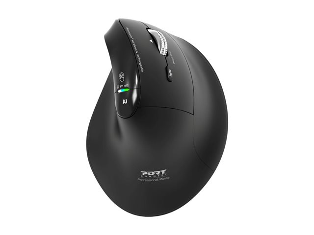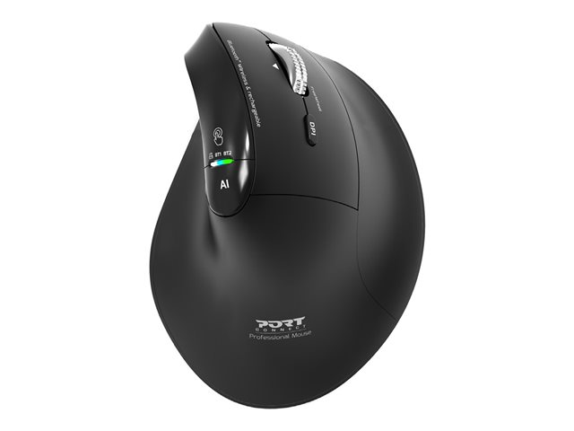PORT - Mus - ergonomisk - optisk - 6 knapper - trådløs - 2.4 GHz, Bluetooth - trådløs modtager (USB) - sort