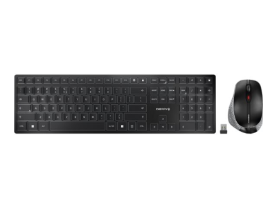 CHERRY DW 9500 SLIM - Sæt med mus og tastatur - trådløs - 2.4 GHz, Bluetooth 4.0 - USA med Euro-symbol - tastkontakt: CHERRY SX - grå, sort - plastikfri indpakning