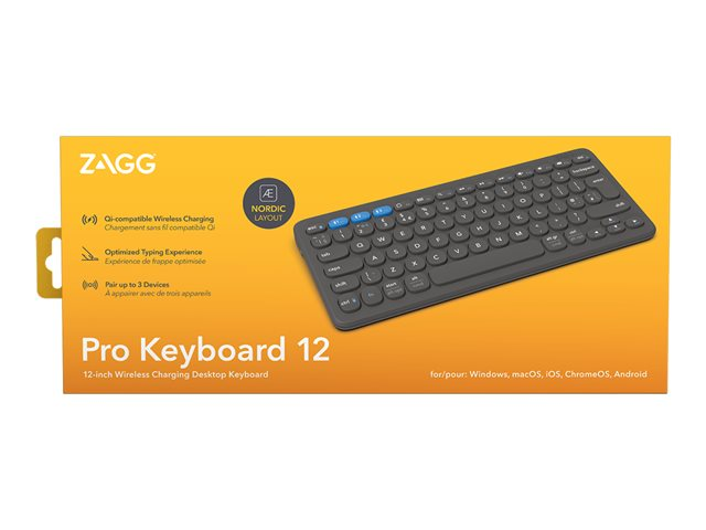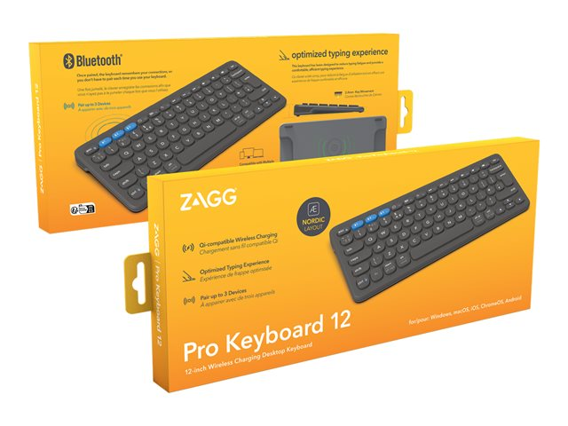 Oplev ZAGG Pro-tastaturet, en alsidig og ergonomisk løsning, der er designet til at forbedre din skriveoplevelse på tværs af flere enheder. Med den trådløse Bluetooth-forbindelse kan du sige farvel til kabelrod og nyde friheden til at arbejde hvor som helst. Det genopladelige litiumpolymerbatteri sikrer, at din produktivitet ikke hæmmes af hyppige opladningspauser, mens det ergonomiske design giver komfort under længerevarende skrivesessioner. Uanset om du bruger Android, Apple iOS, ChromeOS, Mac eller pc, er ZAGG Pro-tastaturet klar til at blive integreret problemfrit i din arbejdsgang. Derudover betyder dets Qi-overensstemmelse, at du kan drage fordel af trådløs opladningsteknologi, hvilket gør det nemmere end nogensinde at holde dine enheder strømforsynede og klar til brug.