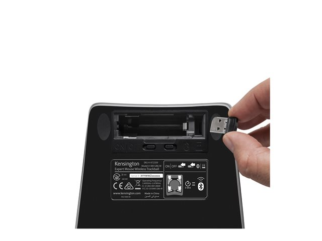 Kensington Expert Mouse Wireless Trackball - Styrebold - højre- og venstrehåndet - optisk - 4 knapper - trådløs - 2.4 GHz, Bluetooth 5.0 LE - Bluetooth USB adapter - sort