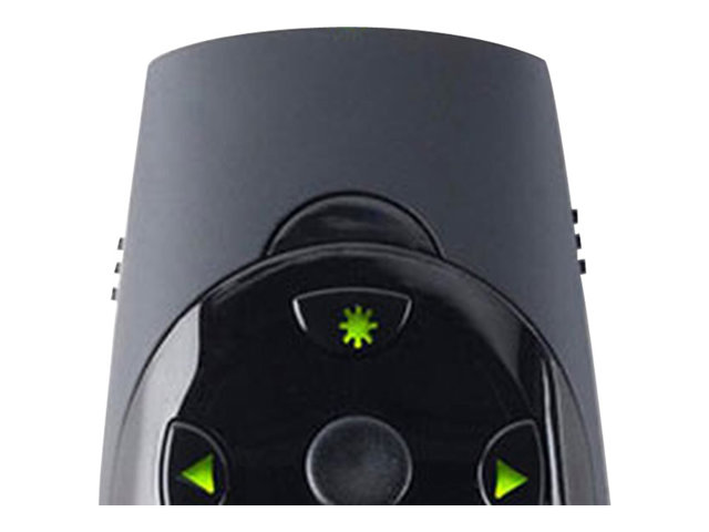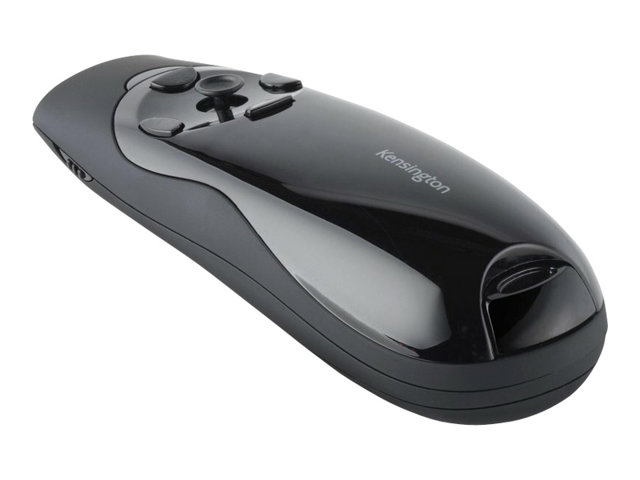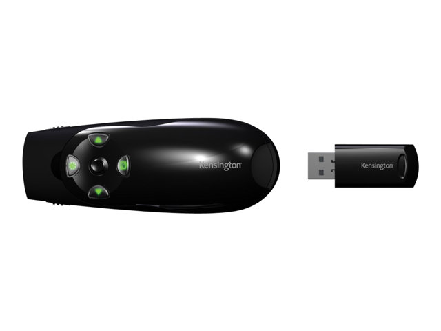 You can't make your point if no one can see it. So make your point with a bright green laser suitable for even the biggest rooms and brightest screens with the Kensington Presenter Expert green laser presenter with cursor control. Some of today's bright LCD and plasma screens pose a real challenge for red laser pointers. But not for the green laser on the Kensington Presenter Expert green laser presenter. It's 10 times brighter than standard red lasers, so it stands out against even the brightest LCD and plasma displays. Of course there's more to a great wireless presenter than just a bright pointer. The Presenter Expert's intuitive four-button design makes it easy to navigate your Keynote or PowerPoint presentation. And when you need to move your cursor, a quick flip of a button gives you full cursor control. The powerful 2.4 Ghz remote resists interference and lets you control Keynote or PowerPoint from up to 150 feet away. The USB receiver stores inside the presenter so you won't have to worry about misplacing it. You won't have to worry about not being able to find the right remote button either, because the Kensington Presenter Expert has backlit buttons.