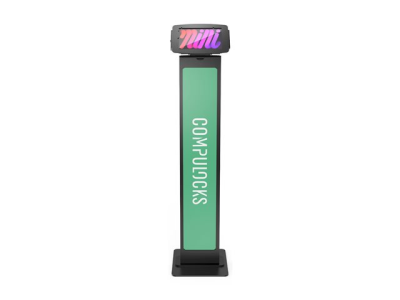 Our BrandMe floor stand allows you to utilize a panel for branding, call to action or custom design to bring attention to your interactive display or kiosk. The tilting mount allows the iPad enclosure to be set in either portrait or landscape mode and the stand base offers additional security features, securing the power source and bolting the unit to the floor.
