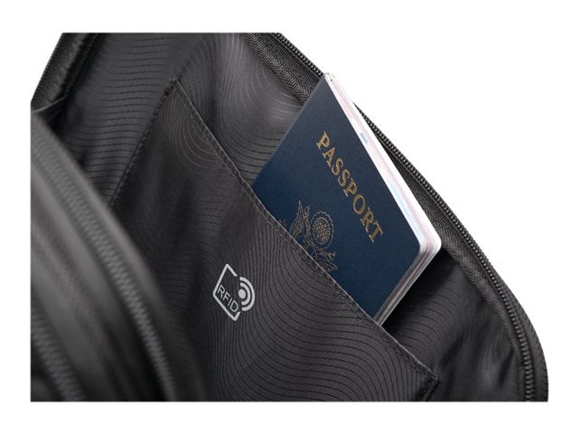 • Quick-access workstation pocket organises your chargers, pens, business cards and more.