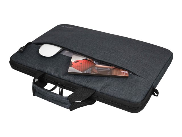 A trendy sleeve for laptop designed to carry and protect your laptop. Easily fits in your bag. The ergonomic and removable shoulder strap bring you all the comfort you need to carry your computer in hand or on your shoulder. The soft interior protects your computer from scratches. It's zipped front pocket allows you to easily carry your cables and accessories.