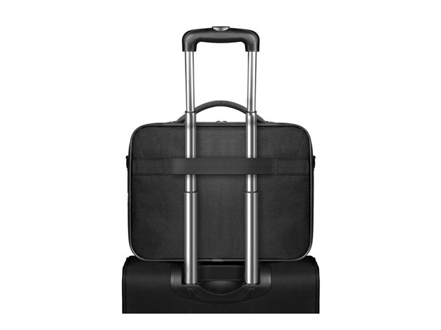 A Clamshell bag designed to carry and protect your laptop and tablet within dedicated compartments and pocket. The resistance and removable shoulder strap allow you to carry your bag on your shoulder more comfortably while a back strap allows you to carry it on a trolley. The large front pocket will allow an easy access to the items you need the most (phone, pens, business cards, chargers etc...).