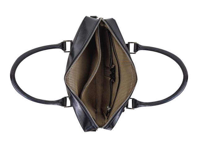 • The interior features multiple storage compartments including a padded section to protect your PC or MacBook
