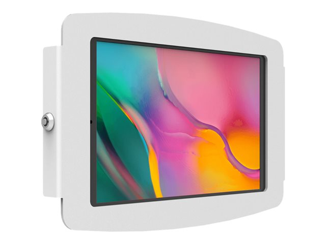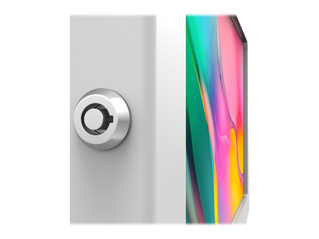 The Space tablet Enclosure features rounded edges and open corners for improved ventilation and allows for limited access to buttons and inputs. Included is a removable home button cover to restrict access to the main button. As with all our tablet lock and tablet lock devices, the tablet can be continuously charged while in the enclosure and have peripheral cables plugged in while mounted.