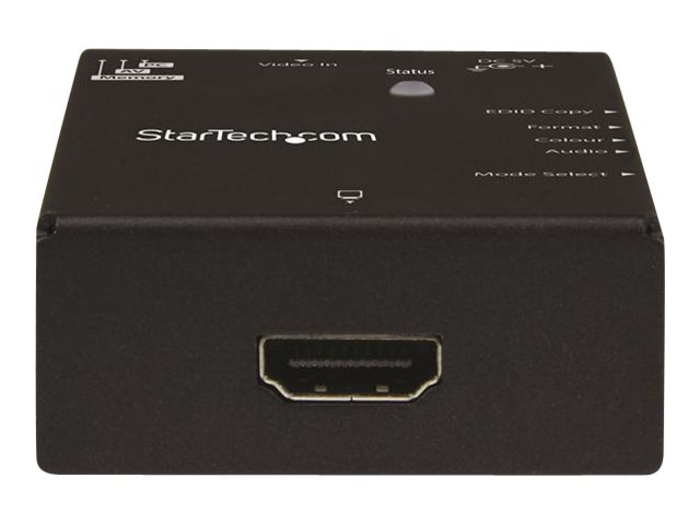 Add copied or ghosted EDID (Extended Display Identification Data) to your HDMI signal to ensure compatibility with your display or projector. This EDID emulator resolves video communication problems that can occur between your HDMI video source and display. The emulator can copy or synthesize the Extended Display Identification Data (EDID) from your HDMI display and relay it to your video source, to fix problems that may result from using third-party equipment such as video extenders, video switches or KVMs in your video setup.