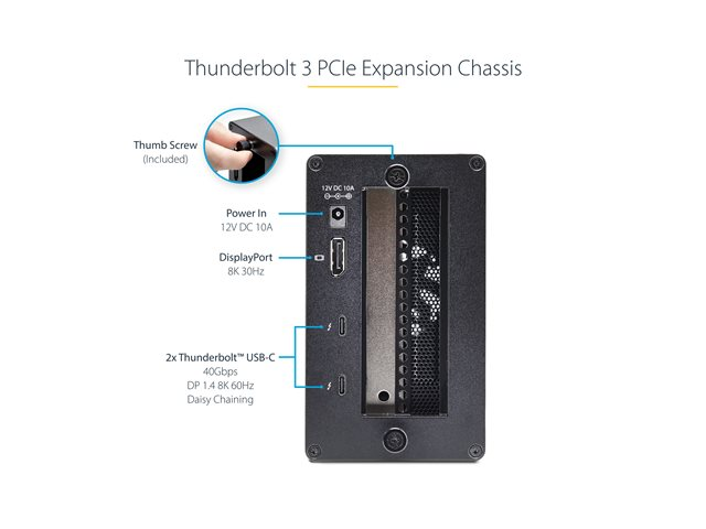 The StarTech.com Thunderbolt 3 PCIe Expansion Chassis delivers performance and versatility for expanding system capabilities. Designed for external use, this chassis features a Thunderbolt cable with a generous length of 1 m to ensure flexibility in setup. With PCI Express 3.0 x16 slots, it supports multiple expansions, accommodating your growing needs.