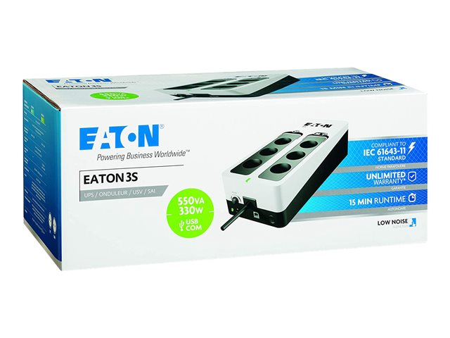 Eaton 3S 550 - UPS - AC 220-240 V - 330 Watt - 550 VA - 1-faset - USB - output-stikforbindelser: 6