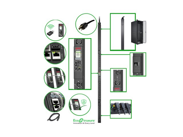 With high reliability, manageability, and security, APC Switched Rack PDUs provide advanced load management plus on/off outlet level power cycling and sequencing control.
