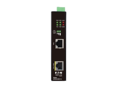 Eaton Tripp Lite Series Industrial Gigabit Ethernet PoE injector, 60W PoE++, 802.3bt, Midspan, -40C to +75C, IP30 housing, Dual 24~57VDC , DIN rail, 1 Port - Strøminjektor (monterbar på DIN rail) - AC 100-240 V - 60 Watt - sort