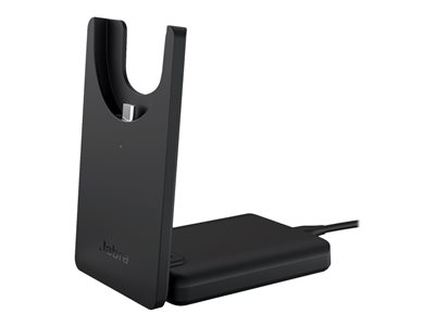 Opladningsstanderen til Jabra Evolve2 55 giver nem og bekvem opladning og opbevaring ved dit skrivebord. Kabel medfølger ikke, et opladningskabel med USB-C-stik er påkrævet og kan købes separat.