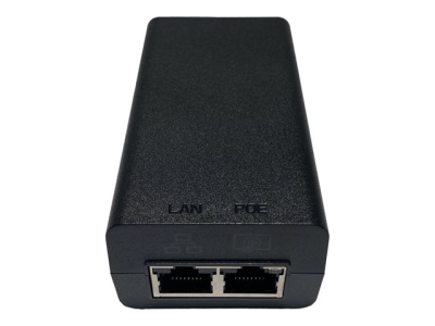 Power over Ethernet-injektorsæt, omfatter PoE-strøminjektor, regional strømledning og stik (1 m), 1 netværkskabel (4,57 m).